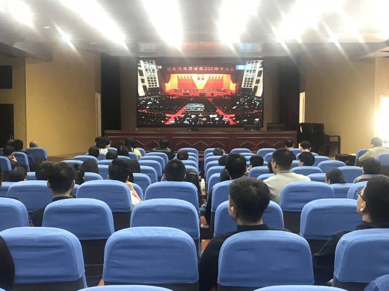 5月4日上午10:00,成人网址 在学院楼434报告厅,组织学院师生党员,入党积极分子,共185人,集中收听收看马克思诞辰200周年纪念大会实况直播