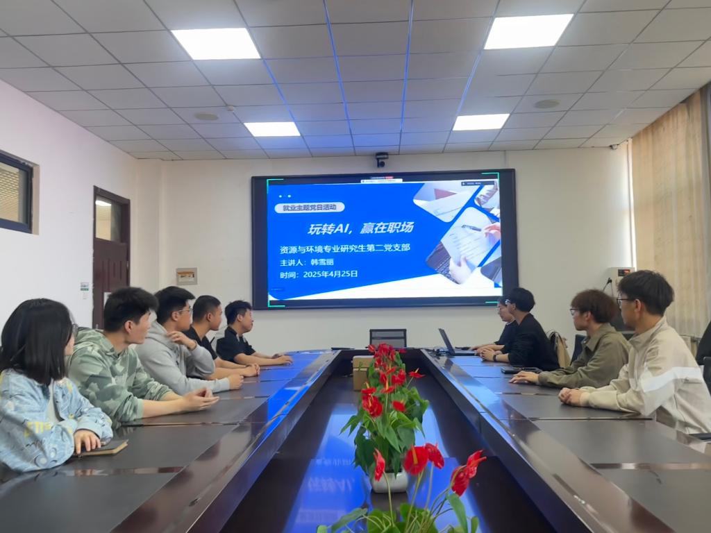 为深入贯彻落实党的二十大精神,推动人工智能技术在就业领域的创新应用,4月17日,成人网址 资源与环境专业研究生第二党支部在J6-547会议室开展了“玩转AI,赢在职场”主题党日活动。活动由党支部书记韩雪丽主持,她以"就业星AI就业能力提升系统"为核心,从理论到实践,为党员们带来了一场内容丰富、实用性强的就业指导会。韩雪丽详细介绍了系统的四大核心功能模块:AI智能简历生成、AI模拟面试、就业指导工具以及实景面试训练。...
