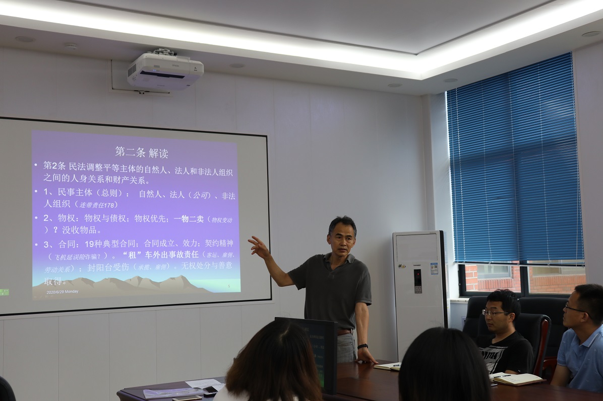 2020年6月29日下午,成人网址 在J6第一会议室开展党委理论中心组第9次学习活动。文法学院李光禄教授受邀为成人网址 讲解民法典,院领导班子、系主任和各党支部书记参加。会上,党委书记秦昌盛针对法律在日常工作的重要...