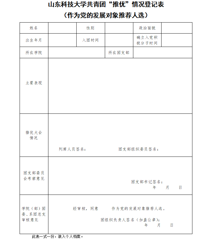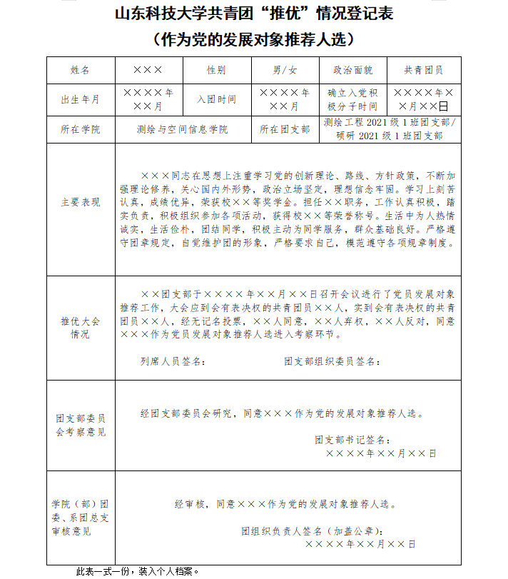 成人网址 共青团“推优”情况登记表(作为党的发展对象推荐人选)样例: