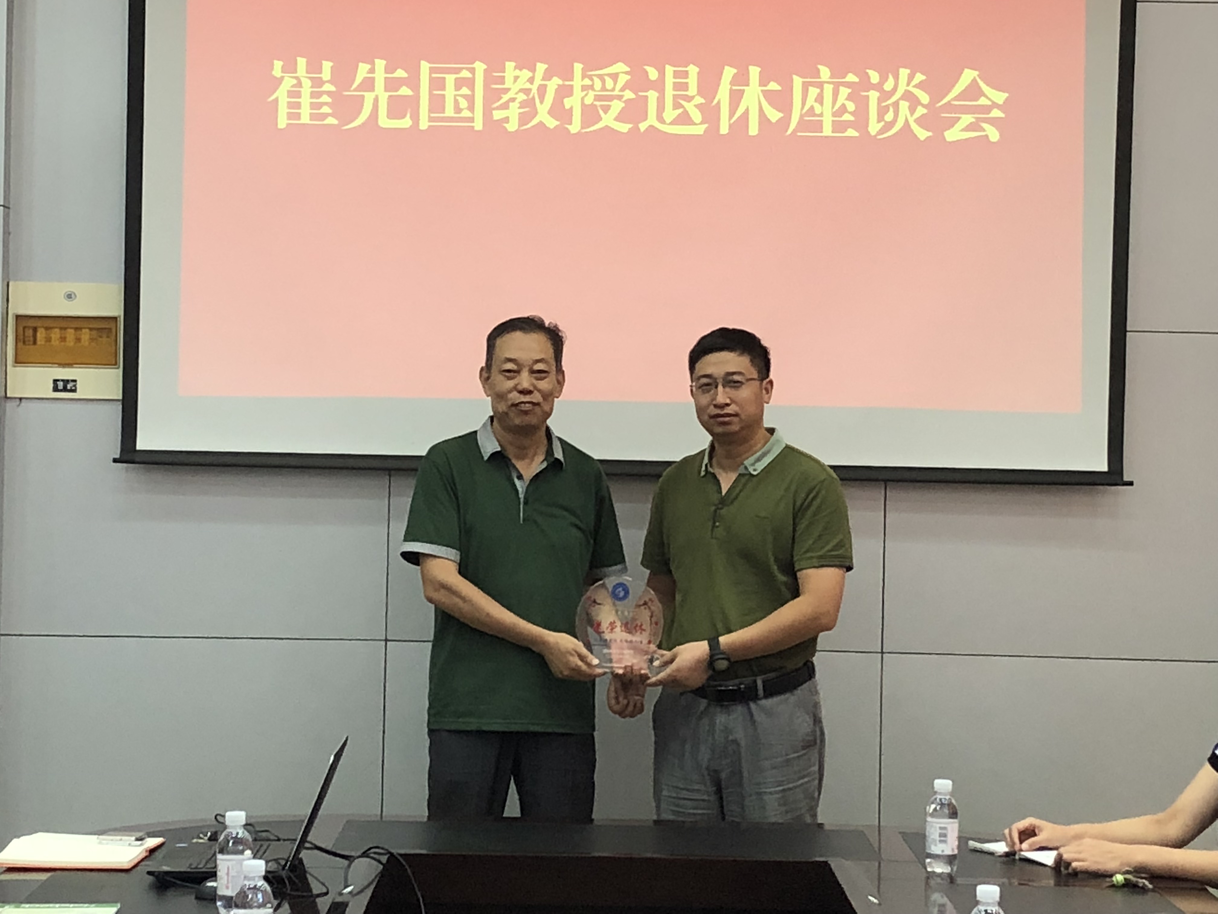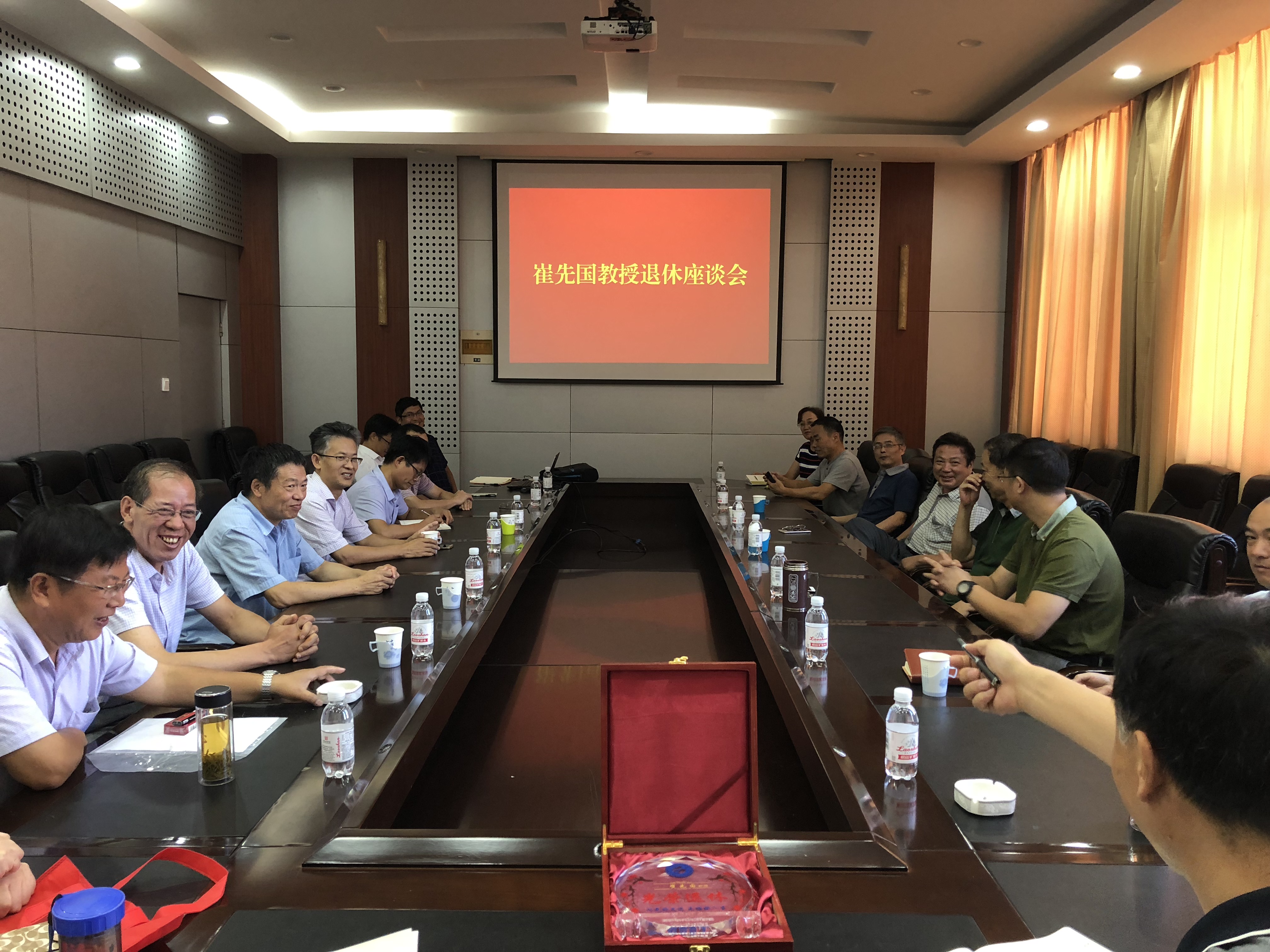 召开崔先国教授光荣退休座谈会,崔先国老师、学院教师代表和学院领导班子成员参加座谈会。