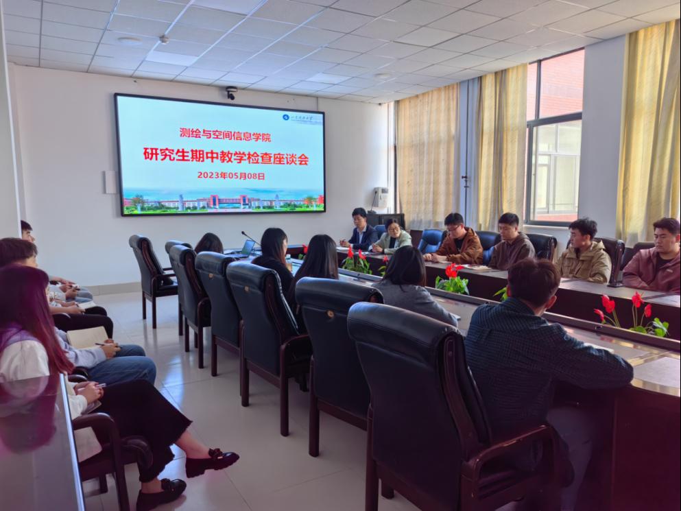 于第十周至第十二周进行了以自查为主的期中教学检查工作。5月8日,测绘学院在J6-547会议室召开了研究生期中教学检查教师座谈会和学生座谈会,副院长徐莹主持座谈会。