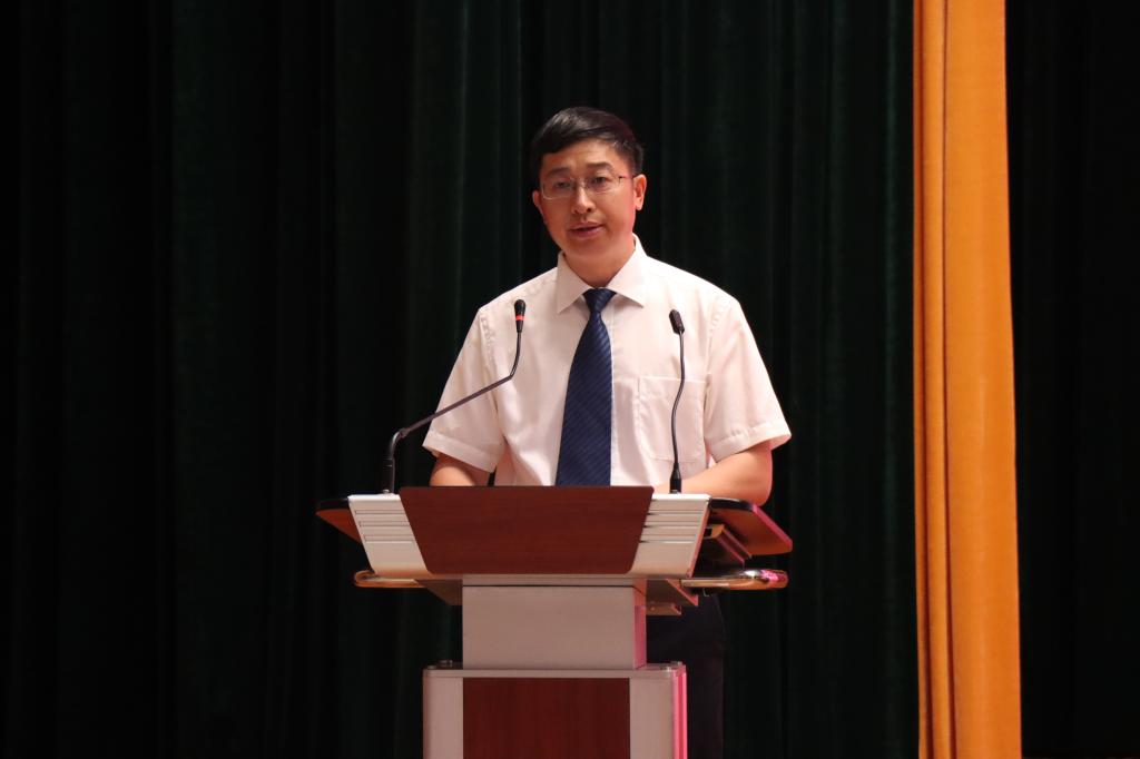 教师代表李振海从做好角色定位、学会学习、做好时间规划、强化一技之长等方面讲述了如何高质量度过大学生活,希望同学们能够积极主动、乐观向上、敞开胸怀,去迎接属于自己的无限可能!