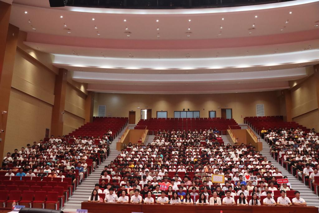 9月3日上午10点,学院在图书信息中心千人报告厅举行2023级新生见面会,并通过抖音平台进行直播。559名2023级新生齐聚一堂,共同聆听开学第一课。