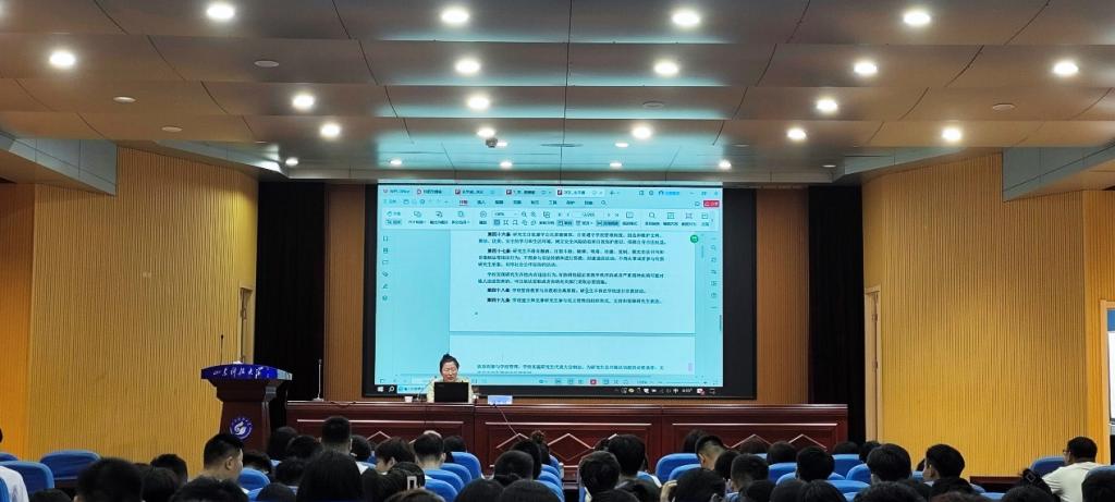 举行2023级研究生新生入学教育系列报告会,引导同学们尽快适应研究生科研学习新生活。