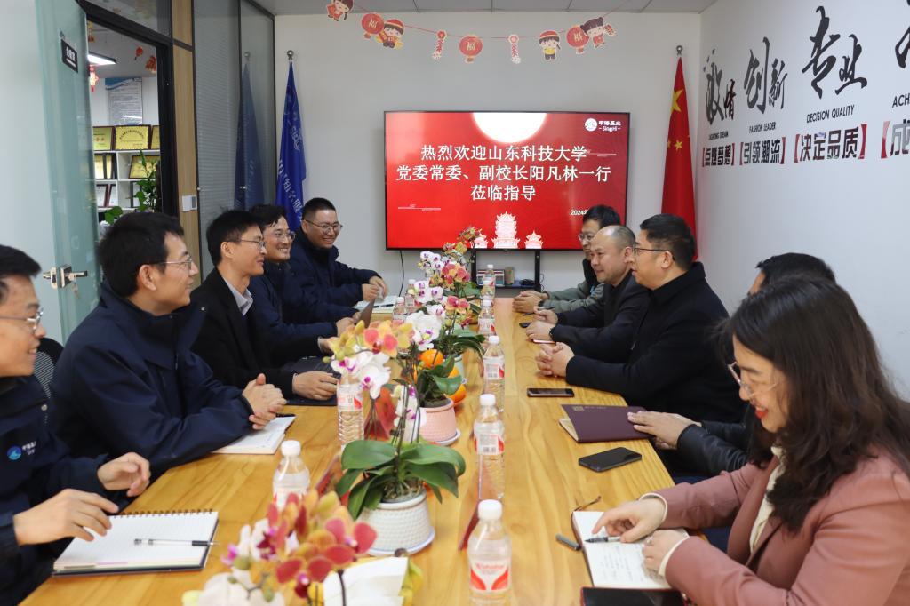 青岛中海基业海洋科技公司总经理侯健、星科瑞升信息科技有限公司董事长孙林、青岛知一新材料有限责任公司总经理王忠卫对阳凡林副校长一行的到访表示了热烈的欢迎,并亲自带领参观了企业成就展、办公场所、实验室等地方,介绍了单位业务范围、应用领域等基本情况。双方就促进学科建设、人才培养、科研成果转化等校企合作相关事宜展开了深入探讨并达成合作意向。