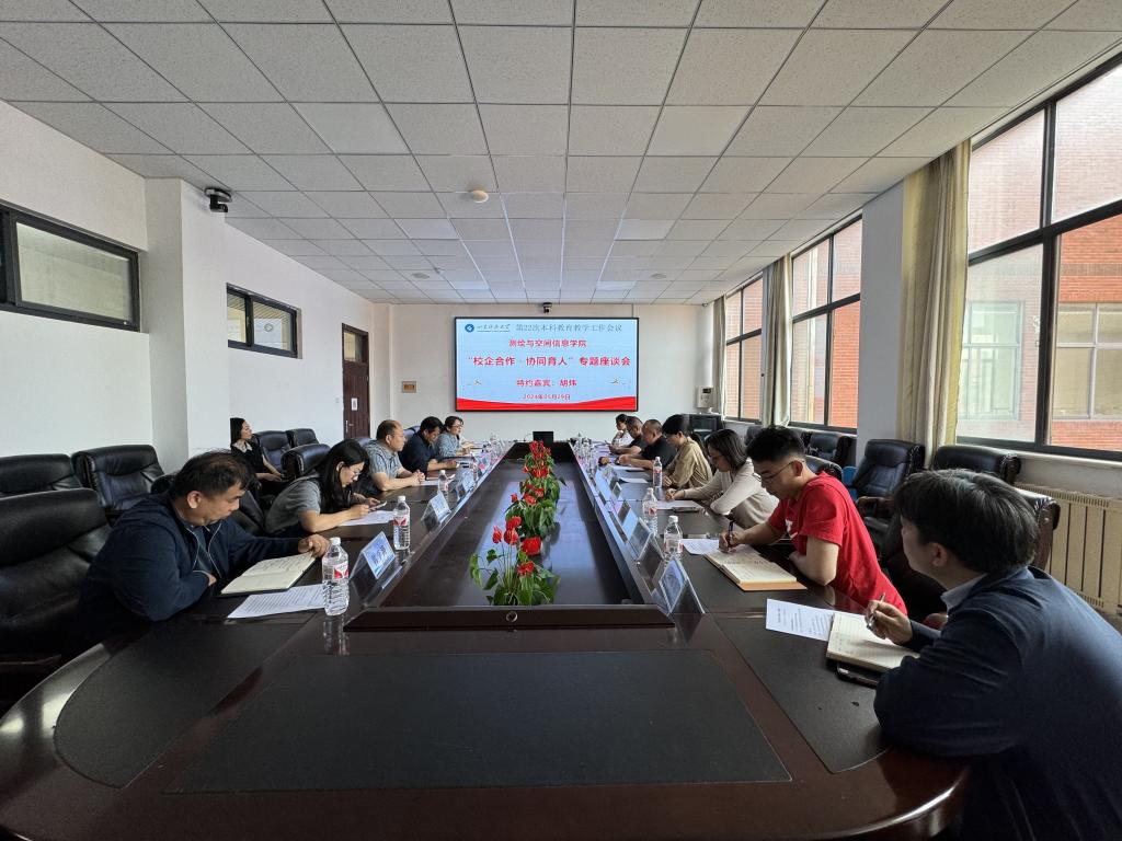 于第四会议室开展“校企合作,协同育人”座谈会,上海华测导航技术股份有限公司副总裁胡炜、上海华测导航技术股份有限公司山东省分公司副总经理尹建平来院座谈交流,学院党委书记范俊峰、部分教师代表参加座谈。