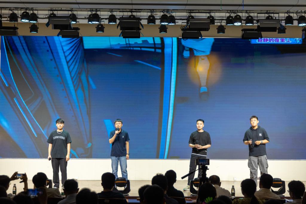 本场晚会由“青衿之志”“星霜荏苒”和“奋楫笃行”三个篇章组成,师生联袂,载歌载舞,其乐融融。晚会伊始,一段别出心裁的情景剧犹如一架时光机,带领大家穿梭回新生入学,重启记忆的闸门;随后,一段热情激昂的器乐表演《Wake》正式拉开晚会帷幕。