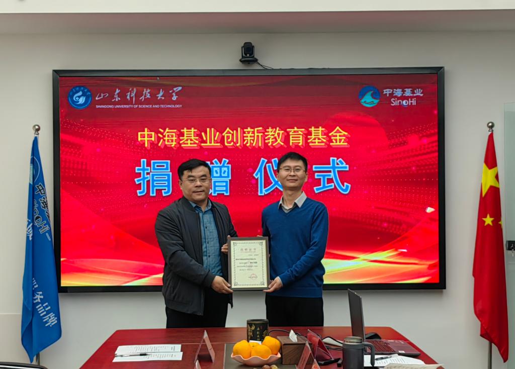 侯健代表公司捐赠10万元设立“中海基业创新教育基金”,用于奖励相应研究方向的导师创新工作室和国家级创新项目中表现突出的优秀教师、优秀学生。涂锐对公司关心教育事业表示感谢,学院将科学合理使用“中海基业创新教育基金”,培养更多测绘领域应用型创新人才。