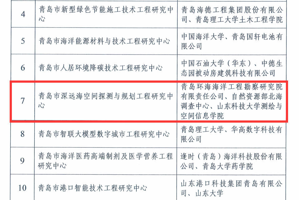 申报的“低空信息智能感知工程研究中心”,以及作为共建单位申报的“青岛市深远海空间探测与规划工程研究中心”成功获批。