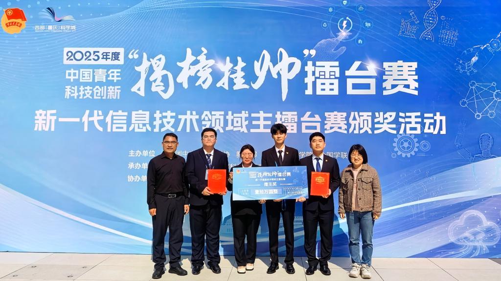 参赛团队在2025年度中国青年科技创新“揭榜挂帅”新一代信息技术领域擂台赛中,斩获特等奖1项、一等奖1项,其中1个项目以小组第一名的优异成绩荣获擂主奖。