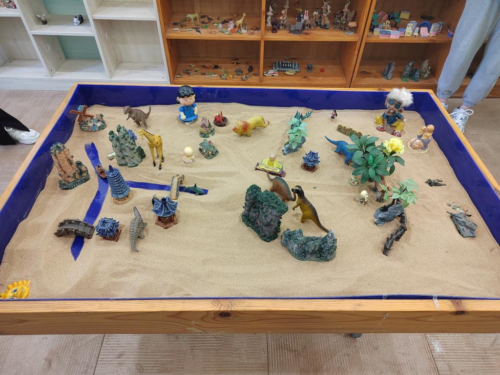 在游戏中,支部党员按照顺序选择心仪的沙具,发挥想象,在沙盘上尽情创作,最终共同完成一幅作品。接下来,每个人分享了创作时的想法构思和创作后的心得体会。活动结束后,支部党员还一起参观体验了情绪宣泄室和自行车VR放松仪等设备器材,缓解了科研压力,调整了身心状态。