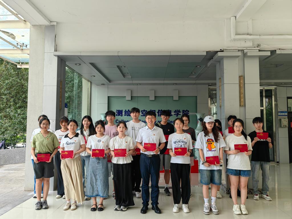 “我志愿加入中国共产党……”,在鲜艳的党旗下,地理学和电子信息专业研究生党支部书记韩冰带领新党员宣誓、全体党员重温入党誓词。铿锵有力的誓言在报告厅中回荡,燃起了广大党员践行诺言、砥砺奋进的激情与担当。