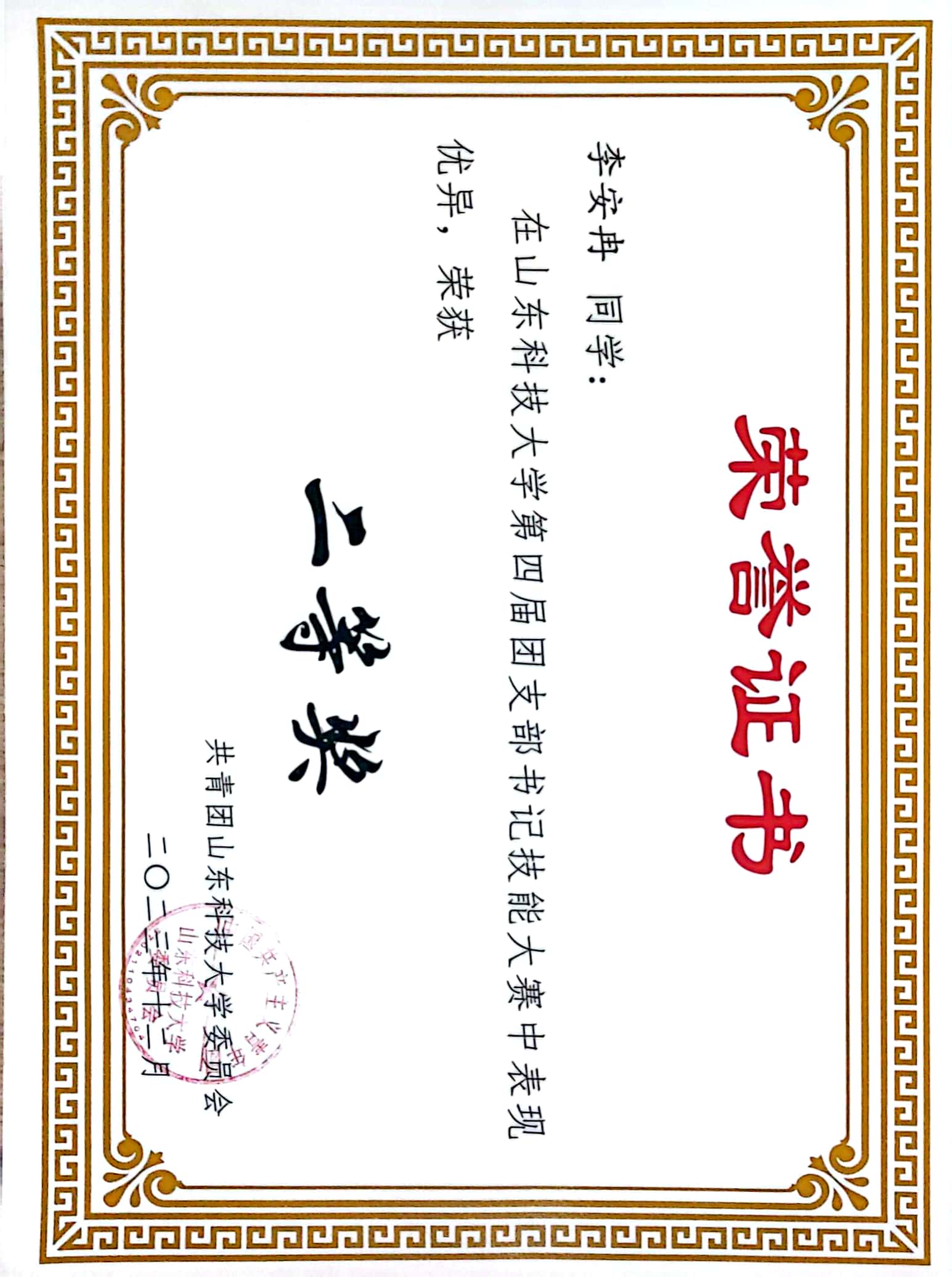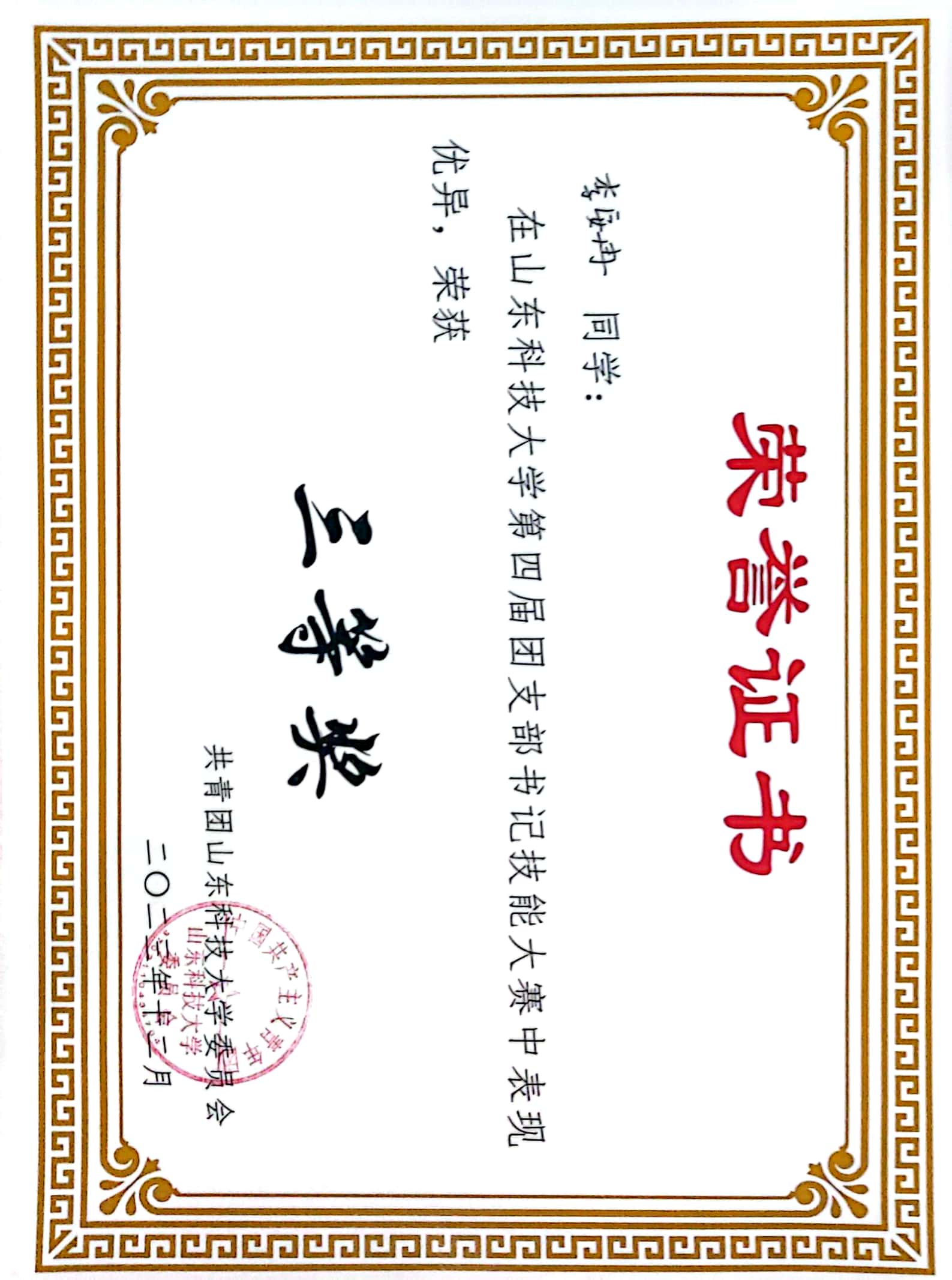 团支书扎实的理论基础和工作素养。经过激烈的角逐,最终获得个人三等奖。