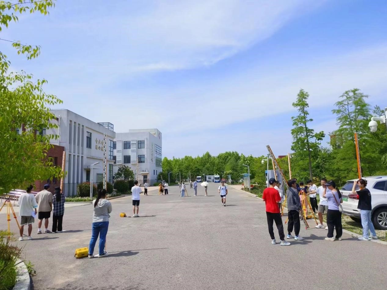 比赛现场骄阳似火,紧张有序。在刘尚国、陈允芳两位老师的组织协调下,往届省赛队员广泛参与,积极担任裁判和志愿者。参赛队员热情高涨,全神贯注,争分夺秒,精准施测,展现出良好的测绘业务素质和团结协作精神。