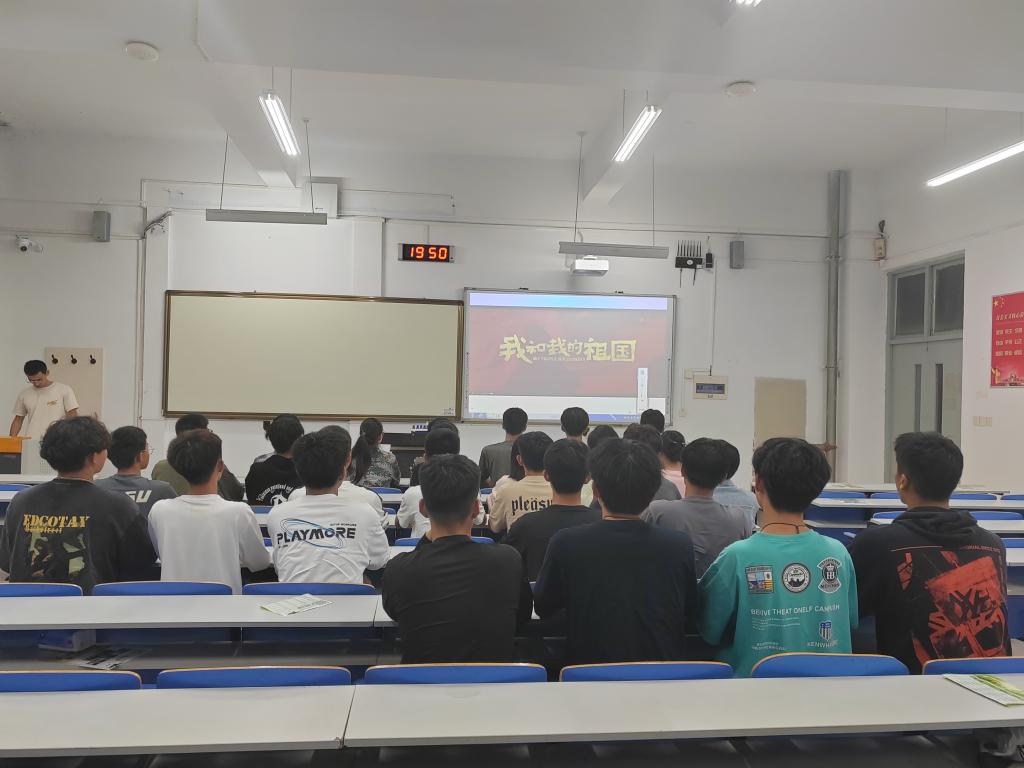 “伴着庄严的乐曲,我们升起了国旗……”。9月27日,国旗护卫队全体新老队员同唱《国旗护卫队队歌》,用歌声表达对五星红旗的热爱和祝福。“还记得刚入学军训的第四天下午,我就被国旗护卫队的展示所震撼,今天我们齐唱队歌,我内心充满自豪,更深深爱上了心中的那一抹红色!”即将入队的新队员李岩睿激动的说。“五星红旗是团结的、革命的、胜利的旗帜,是人民的旗帜,代表着近百年来积贫积弱,受尽屈辱的中华民族从此站起来了!”国旗护卫队韩庆森结合一个个鲜活的国旗小故事,生动的讲解了五星国旗的历史由来与重要意义,赢得了在场队员热烈的掌声。