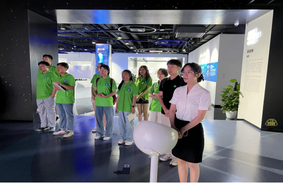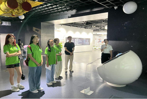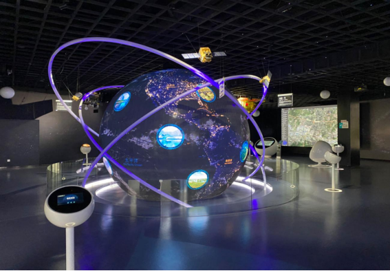航天航空遥感专馆中,巨型球幕视频结合VR、MR互动,实践团成员身临其境感受科技与现实的融合,穿越时空进行一场亦真亦幻的遥感魅力之旅。此外,还观摩了“高景一号”、“高分一号”、“资源三号”卫星模型,真切体验空间遥感在我国的应用。