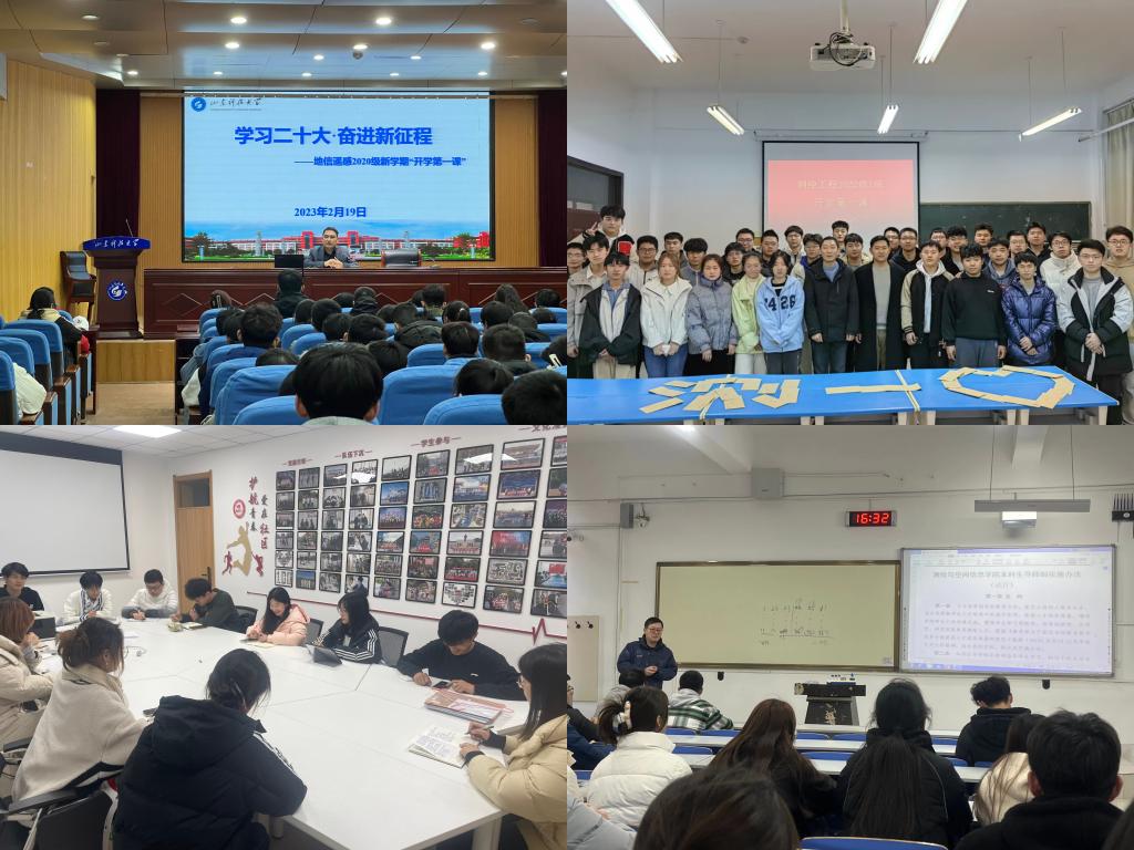 自开学后,学院辅导员、班主任围绕疫情防控、爱国主义、安全文明、学风建设等主题组织开展班会活动,辅导员葛佳裕为学生准备了“小惊喜”“小礼物”,营造“暖心”氛围,鼓励学生梳理新学期的学习和工作任务,制定合理的学习计划;班主任陈传法为地信22级2班学生分析学习成绩,引导学生在新学期学会学习、找准差距、精准发力。辅导员张德彪表示:“开学第一课主题班会能够帮助学生迅速调整状态,投入到崭新的学习生活中,‘撸起袖子加油干’,迎接春暖花开的大学生活。”