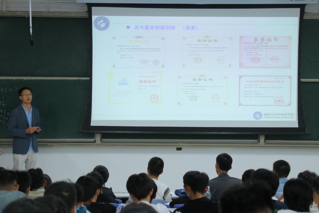 副院长刘尚国,测绘工程系主任周锋,海洋测绘系主任张凯以及班主任刘如飞、张方照、崔晓东出席会议,测绘工程专业百余名新生全部参会,会议由辅导员牛盛光主持。