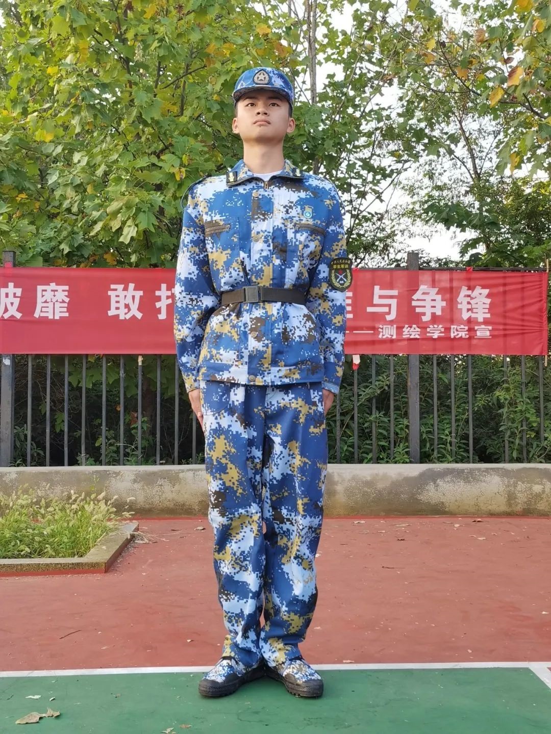 军训第一天,大家已经被浓浓的氛围所感染,每个人都昂扬向上,积极挑战身体的极限,而我也不惧烈阳,不惧酷暑,不断挑战着自我。