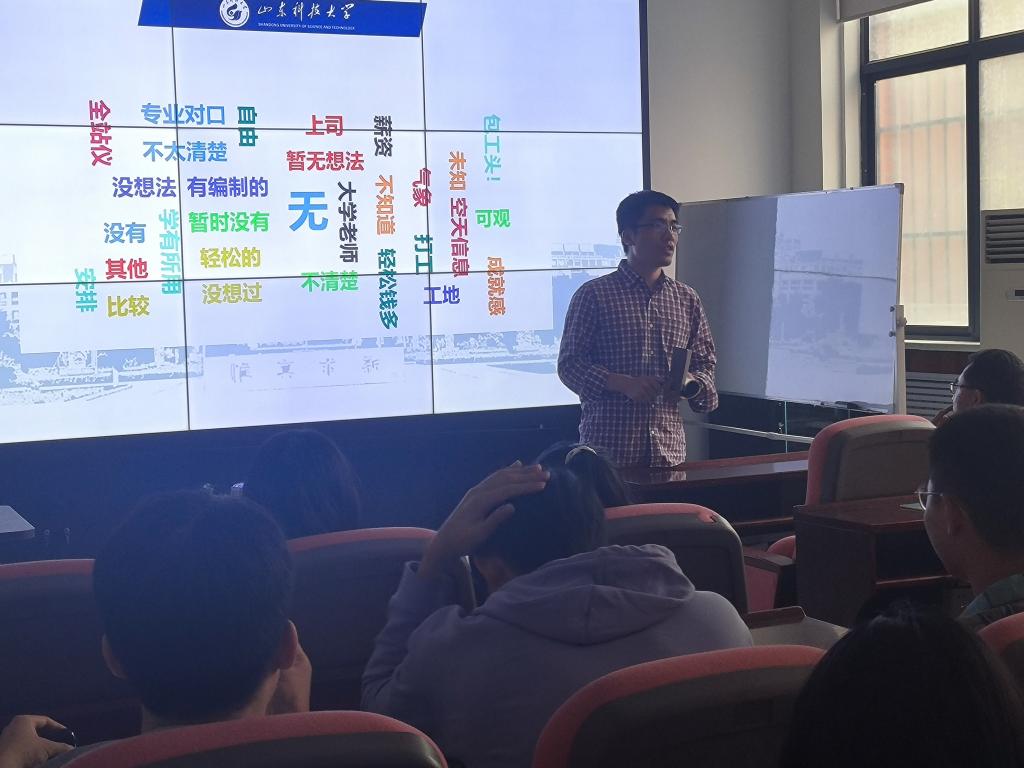 随后,全班同学结合大学期间的发展变化、未来发展规划等方面逐一进行了自我介绍,分享了大学期间的收获和成长,以及个人存在的不足,并对大三大四的大学生生活进行规划,树立了短期职业生涯规划目标。班长司秉奇准备了职业规划的相关材料,向大家介绍了有关考研、就业、考公考编、入伍和其他职业相关的信息和知识,为大家整理了一些职业发展规划的资料和网站,方便同学们做好职业生涯规划。