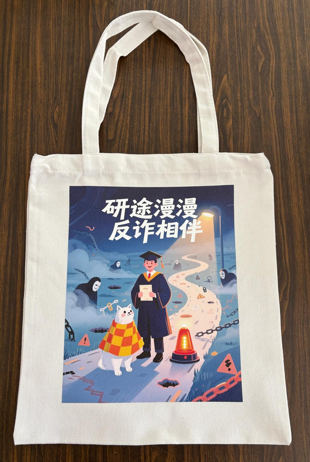 活动共计收到参赛作品30份,经评审,最终评选出一等奖3名、二等奖6名、三等奖6名。为充分发挥优秀作品的宣传效应,学院特别将一等奖作品精心制作成实物帆布包,并发放给获奖者。这些兼具实用性与教育意义的文创产品将在校园内持续传播反诈知识,进一步扩大活动的社会影响力。