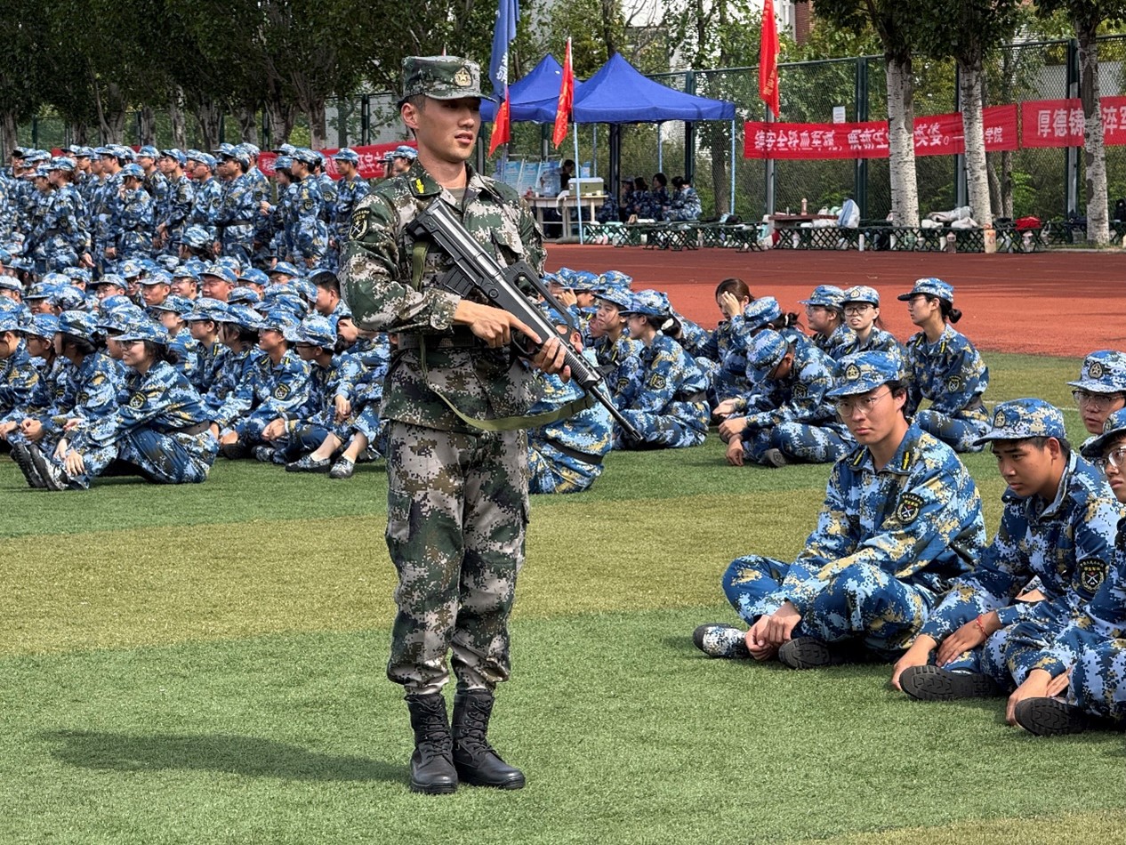 在95式操作训练环节,教官们详细地指导握枪姿势,反复强调练习技巧。两小时训练中,烈日下的汗水浸透了迷彩军训服,却没有一名同学松懈,学生们始终保持专注,在实操中感受枪械操作严谨性与规范性。