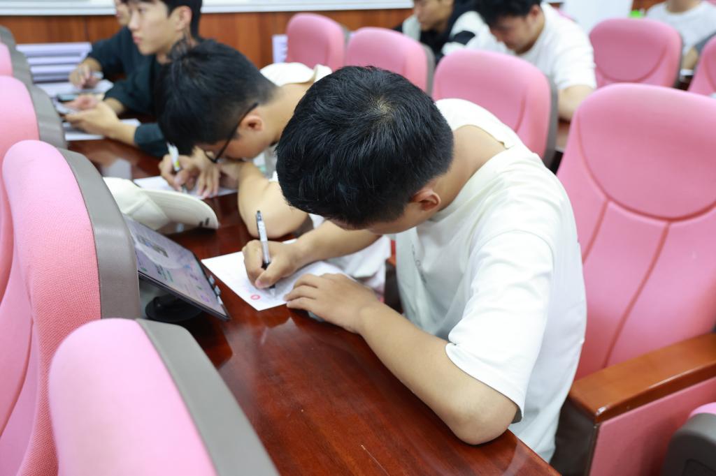紧接着,“一封家书”环节温情开启。工作人员首先与同学们分享了抗战时期革命先辈所写的家书案例,生动讲述了那一纸信笺背后所承载的情感价值与坚定信仰。在深沉的历史回望中,大家静心伏案,提笔书写,字里行间流淌着对校园生活的记录、对远方家人的思念,也悄然印记着属于青年一代的成长与蜕变。
