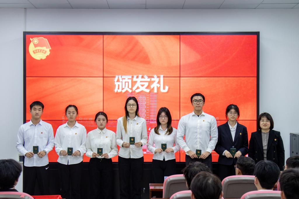 仪式在庄严的国歌声中拉开帷幕。孙金香宣读新发展团员名单,吴昊、孙金香、韩冰向新发展团员颁发团员证并佩戴团徽。22名新团员、活动现场全体团员在领誓人金琦楠的带领下,重温入团誓词,他们用最洪亮的声音喊出自己的名字,表达出自己勇担时代重任的决心。新团员代表赵一茜和优秀团员代表张子超分别发言。随后,测绘学院党委副书记兼副院长吴昊寄语团员青年,希望团员们在今后的学习、工作和生活中,努力成长为有理想、敢担当、能吃苦、肯奋斗的新时代好青年。