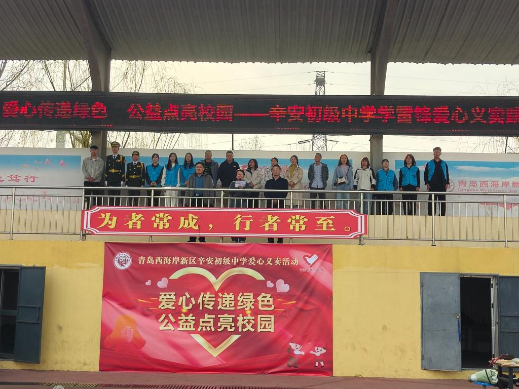 国旗护卫队走进青岛西海岸新区辛安初级中学,在学校举办的义卖活动中开展“学雷锋这样做”主题情景问答活动,以趣味互动的形式让雷锋精神扎根校园。