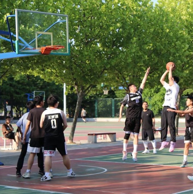 随着一声哨响,篮球赛正式拉开帷幕,双方队员立刻进入状态。球场上,教师队与毕业生队你来我往,激情碰撞、切磋球技;球场下,师生不断加油鼓劲、呐喊助威,凝聚精神与力量。一个个精准投篮,一次次巧妙上篮,都引来了无数的欢呼与喝彩。