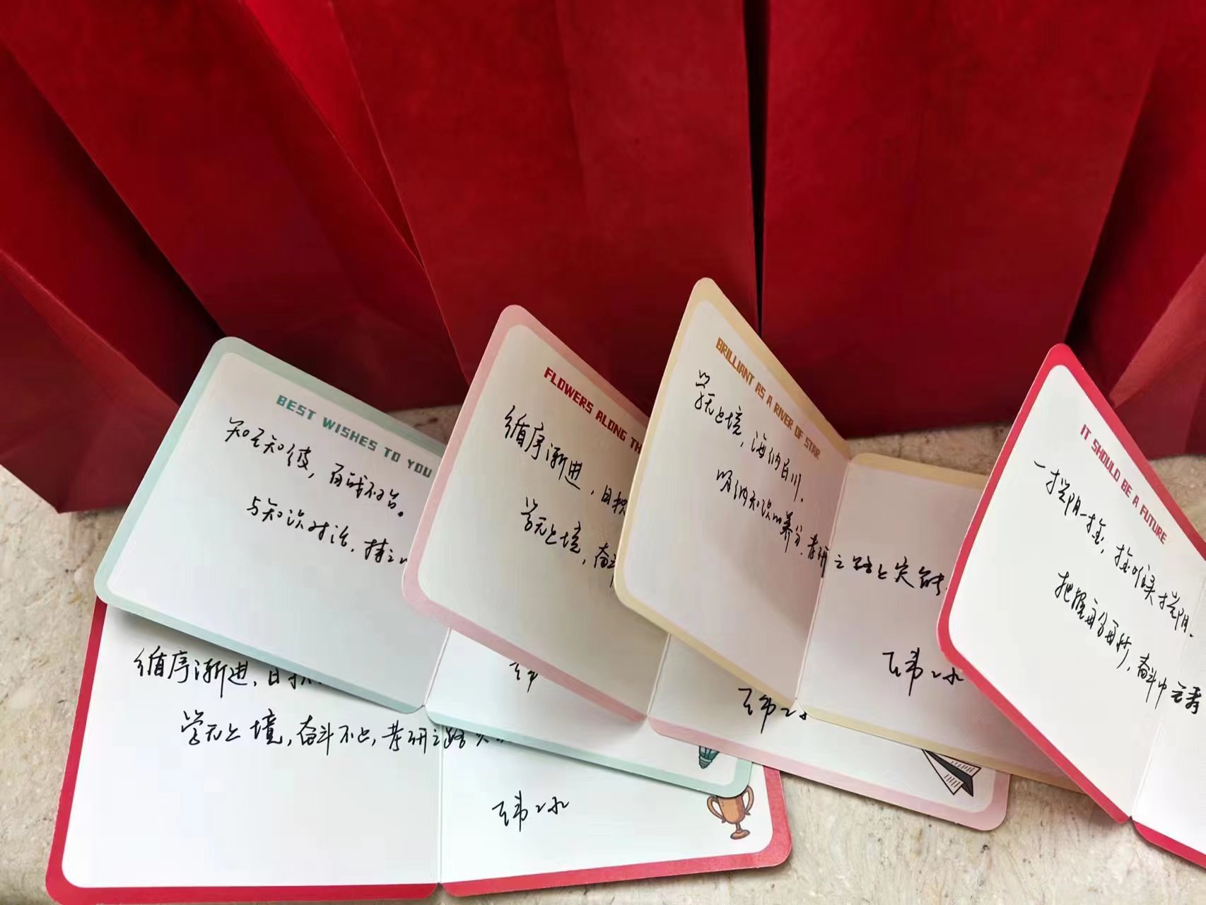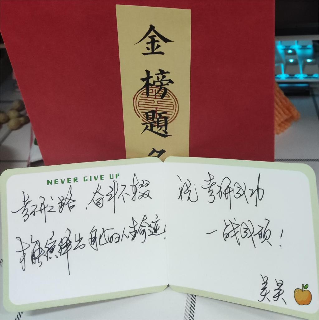 学院为考研学子精心准备“考研暖心礼袋”,每一份礼袋中都有辅导员老师手写考研祝福贺卡,寄托着学院对考研学子们的亲切关怀和殷殷祝福。橙子代表着心想事“橙”,蛋糕寓意定能“糕”中,旺仔牛奶祝福同学们一“旺”到底,期望同学们在考场上展现最出色的自己。