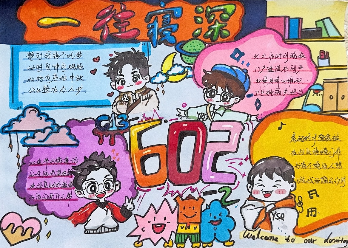 研究生会举办了“‘寓’你同行、‘室’事如意”宿舍安全文明公约设计活动。本次活动得到了广大研究生的积极响应,共吸引了51间宿舍、200余名同学踊跃参与,共收到51份制作精美的宿舍公约作品。