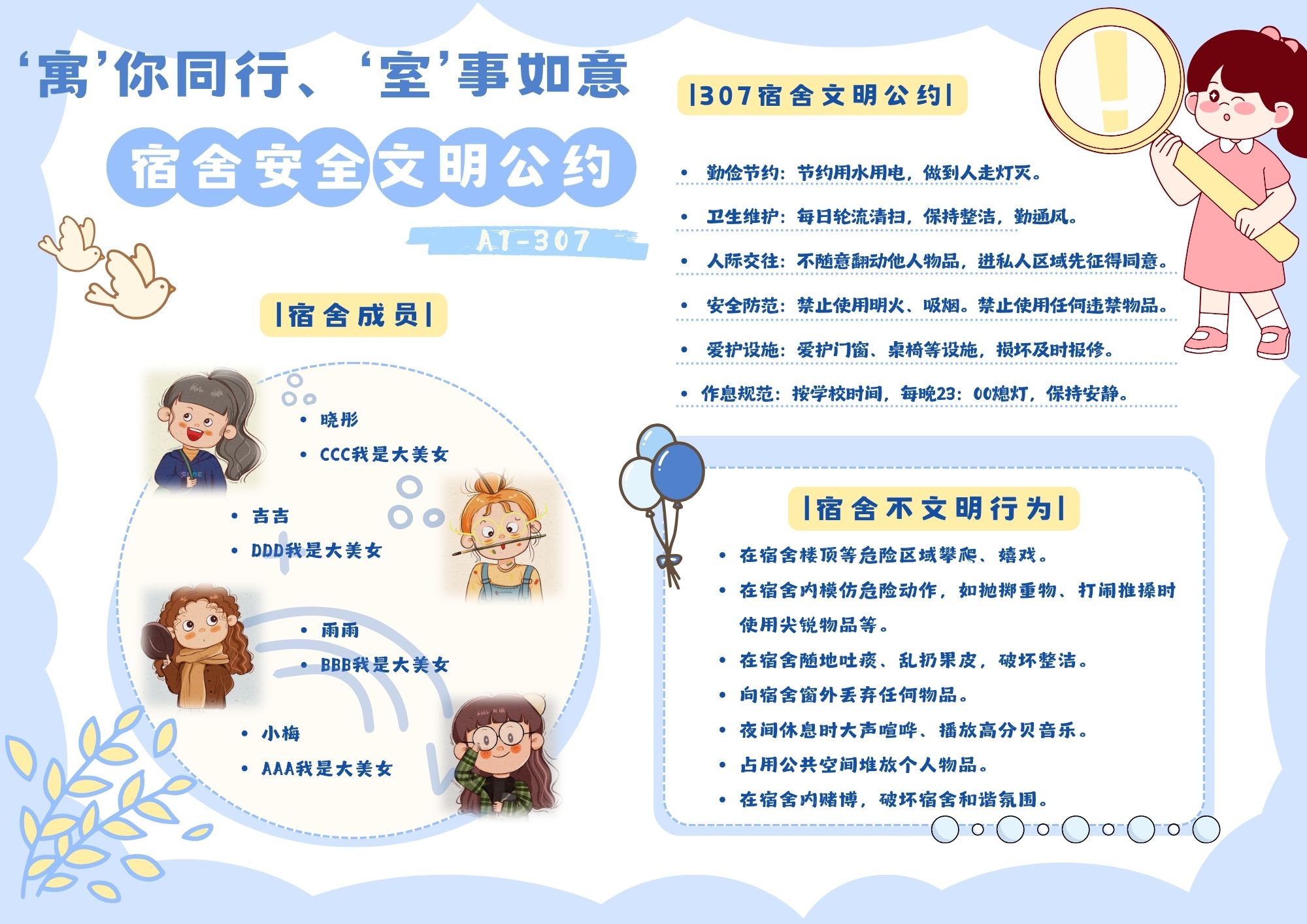 参与此次活动的杜聪慧表示:“通过集体讨论和共同设计宿舍公约,不仅增进了舍友之间的感情,更让我们深刻认识到遵守公约对营造良好生活环境的重要性。我们将严格执行公约内容,共同维护宿舍的温馨氛围和安全秩序。”(通讯员:韩雪丽、杜心彤)