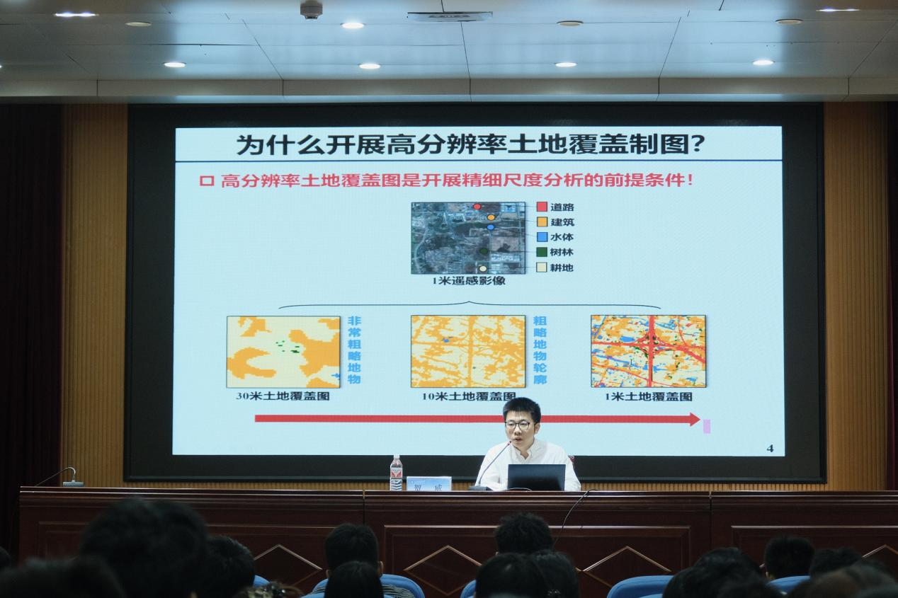 10月11日上午,成人网址 第48期“智绘讲堂”在J6-434报告厅成功举办。本期讲座邀请了武汉大学贺威教授作“弱监督高分辨率土地覆盖制图研究”专题报告。报告由成人网址 朱红春教授主持,吸引了近200名师生到场聆听。报告中,贺威教授基于CNN的跨分辨率制图网络,结合弱监督学习策略,详细讲解了CNN与ViT双分支高效制图网络的框架改进措施及效果。随后,贺教授展示了中国首幅1米分辨率土地覆盖制图的完整过程和最终成果。最后,贺威...