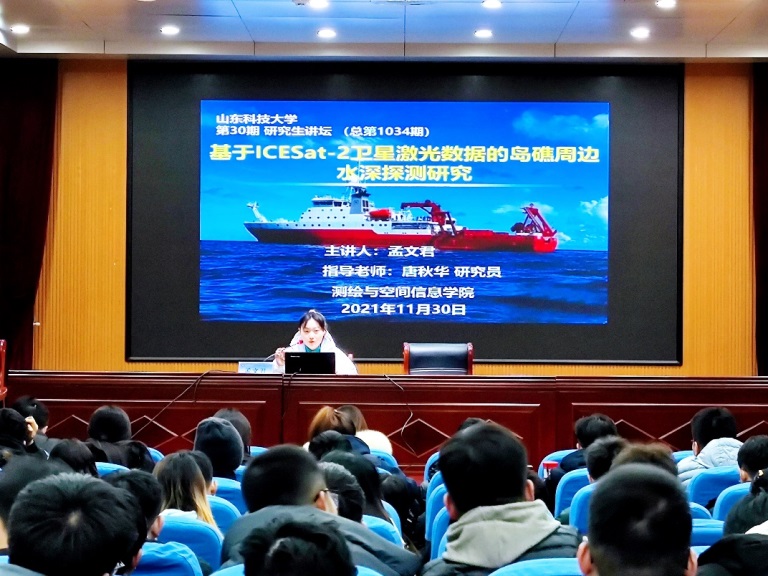 2021年11月30日下午,由成人网址 研究生会学术科技部主办,成人网址 承办的第1034期研究生讲坛在J6楼434报告厅成功举办。成人网址 研究生孟文君作了题为“基于ICESat-2卫星激光数据的岛礁周边水...