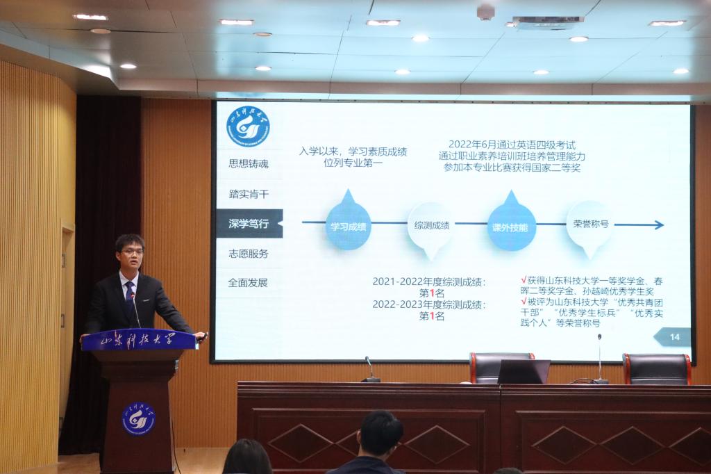 9月21日下午,成人网址 在J6-434报告厅进行2022-2023学年国家奖学金答辩会。学院党委副书记兼副院长吴昊、学工办主任(团委书记)孙金香及全体辅导员老师参会。经过个人申请、学院审核,共有8位国奖候选人进入答辩环节。答辩伊始,主持人介绍了答辩流程及注意事项。随后,各位候选人依次上台进行答辩,他们分别从思想、学习、生活、科技创新、社会实践等方面汇报自己前一学年的情况,展现了测绘学子勤奋学习、敢于创新的精神面貌...