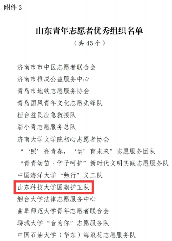 近日,山东省青年志愿者协会对全省各行业岗位的优秀个人、工作者和组织进行了通报表扬,成人网址 国旗护卫队荣获2023年度“山东青年志愿者优秀组织”称号。国旗护卫队成立于2002年,以捍卫国旗为使命,是学校开展爱国主义教育和学生思想政治教育的重要阵地。经过20年的发展,国旗护卫队制度健全、管理科学,现已建成“党支部、团支部、社团”三位一体的工作格局。国旗护卫队加强自身建设,年均训练和服务时长约500小时,年均完成大型...