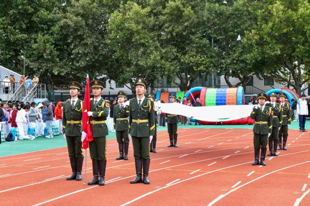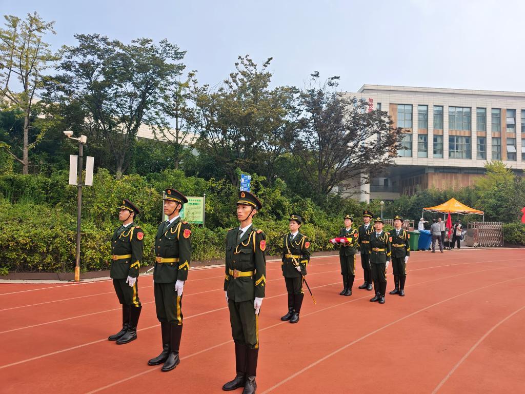 9月30日,成人网址 国旗护卫队受邀承担育才中学秋季运动会开幕式礼宾任务。队员们步伐整齐、动作标准,圆满完成了护旗与升旗全流程,为运动会注入了浓厚的爱国热情与青春朝气。上午8时,运动场内气氛热烈。伴随《运动员进行曲》激昂奏响,入场式正式启动。国旗护卫队作为首支方阵率先入场,队员们身着笔挺礼服,精神抖擞,护持国旗,步伐铿锵有力。“出旗!”口令一出,旗手迈着正步走向旗杆,护旗队员紧随其后,动作精准、...