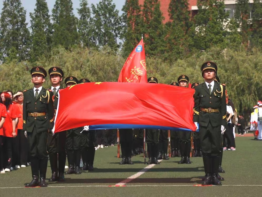 5月17日,成人网址 2023年田径运动会开幕式在风雨操场举行,国旗护卫队负责运动会开幕式出旗、护送国旗和校旗的礼宾任务。下午14:00,开幕式正式开始。伴着《运动员进行曲》欢快的音乐,8名抬旗手迅速将国旗和校旗展开。执行队长一声令下,旗手迅速挥开队旗,国旗护卫队方队整齐入场。“向右看!”,到达主席台前正步走,精神激扬,气宇轩昂。在环绕操场半周后,到达操场中心就位。“向国旗敬礼!”,抬旗手将国旗高高举起...