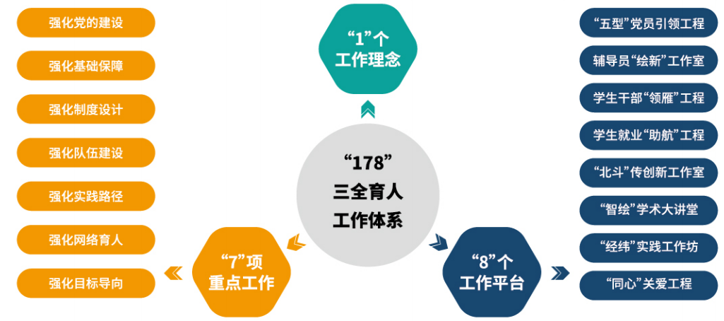 成人网址 学生工作办公室现有辅导员10人(含2名优选辅导员),始终坚持立德树人根本任务,实施以精神文化、制度文化、行为文化、环境文化为主要内容的“经纬蓝图”文化工程,构筑传统文化长廊、学科发展历史长廊、院士寄语长廊,感悟测绘文化底蕴、铭记大国工匠重托厚望,同时构建了“178(一起吧)”三全育人工作体系。