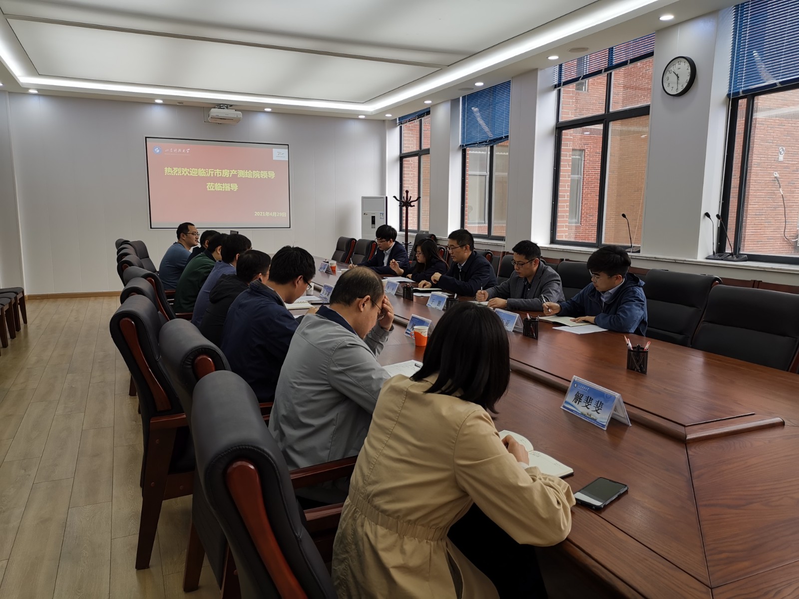2021年4月29日,临沂市房地产测绘院院长李平、副院长于鹏、综合科负责人董秀玲、信息中心负责人张丕亚、测绘三中心业务主管张顺一行来成人网址 调研。成人网址 党委书记秦昌盛、副院长王瑞富、测量系主任周峰以及成人网址 部...