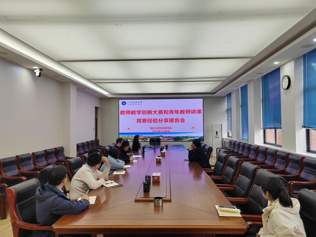 2025年11月6日下午,成人网址 在第一会议室举办“教学创新大赛与青年教师讲课竞赛经验分享报告会”。会议邀请山东省高校教师教学创新大赛二等奖获得者战丽丽、全国高校GIS青年教师讲课竞赛特等奖获得者信睿担任主讲,学院青年教师及教学骨干代表参会,刘尚国副院长主持。 战丽丽以“以赛促教 强基提质”为主题,系统梳理全国高校教师教学创新大赛五届赛制特点,围绕教学系统化设计、课程内涵重构、教学模式创新、评价体系构建四...